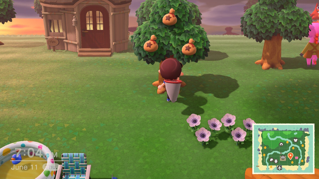 This game does a fantastic job of marking your progress in tangible ways, and the museum is definitely one of them. Your house is another. Like I said in the intro, you start out in these tents and rough it until you’re given the option to expand. The same is said for all of the buildings, and it really makes all the work you put in feel worthwhile. This game also runs in real time, with a day/night cycle and different weather sometimes. Also different characters show up on the island depending on the day of the week, most of the time to sell you something. There’s Leif, a sloth, who usually sets up in the middle of the week, on Wednesday or Thursday and sells you plants and buys back weeds that you pick. There’s Daisy Mae, a pig who sells turnips on Sunday that function as shares in a stock market, which you can then sell back to Nook’s Cranny for a high number of bells usually. If gambling and risking your fortune on the promise of exorbitant riches isn’t your speed, you can always dig up a bag of bells: